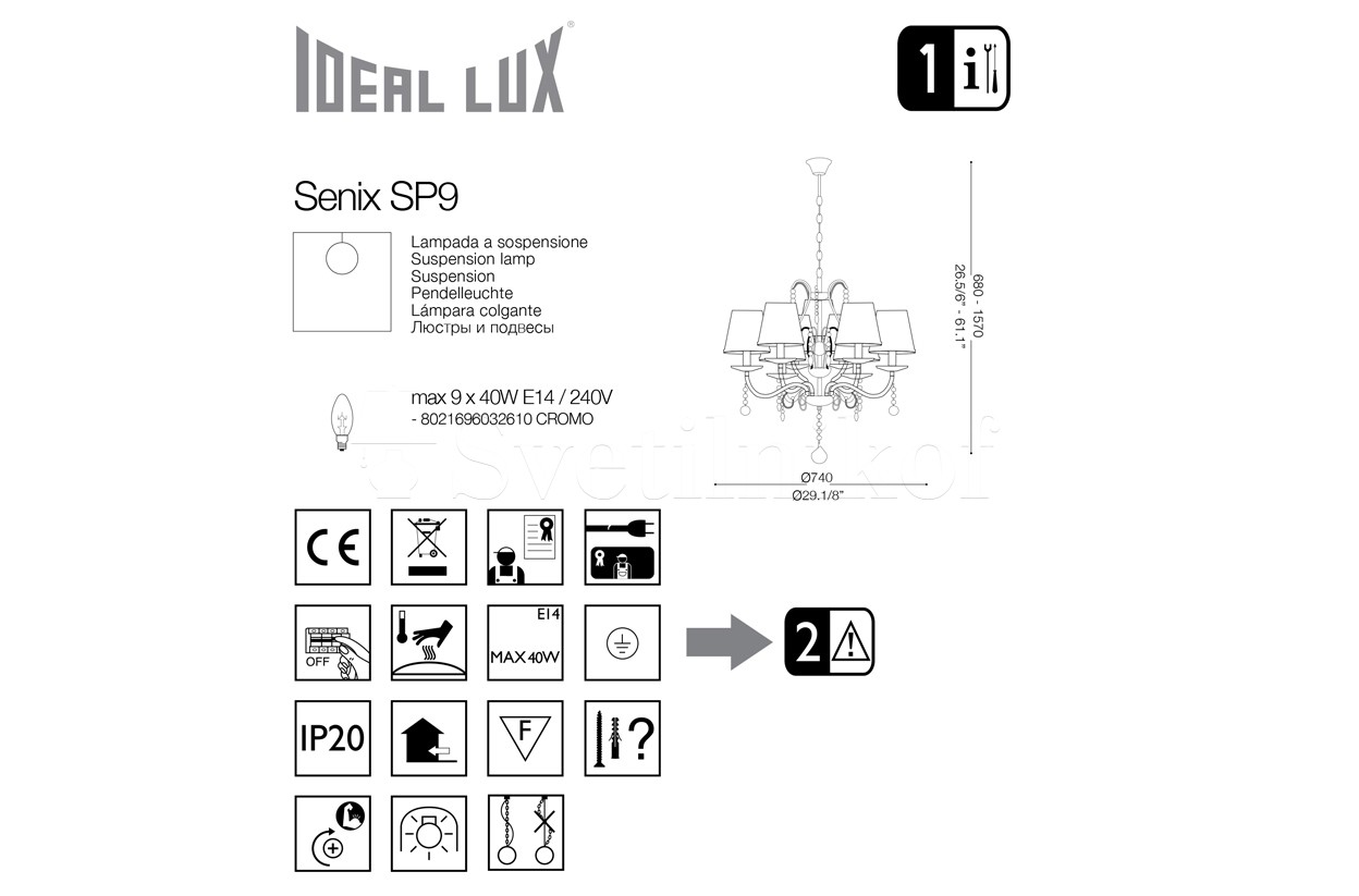 Люстра SENIX SP9 Ideal Lux 032610