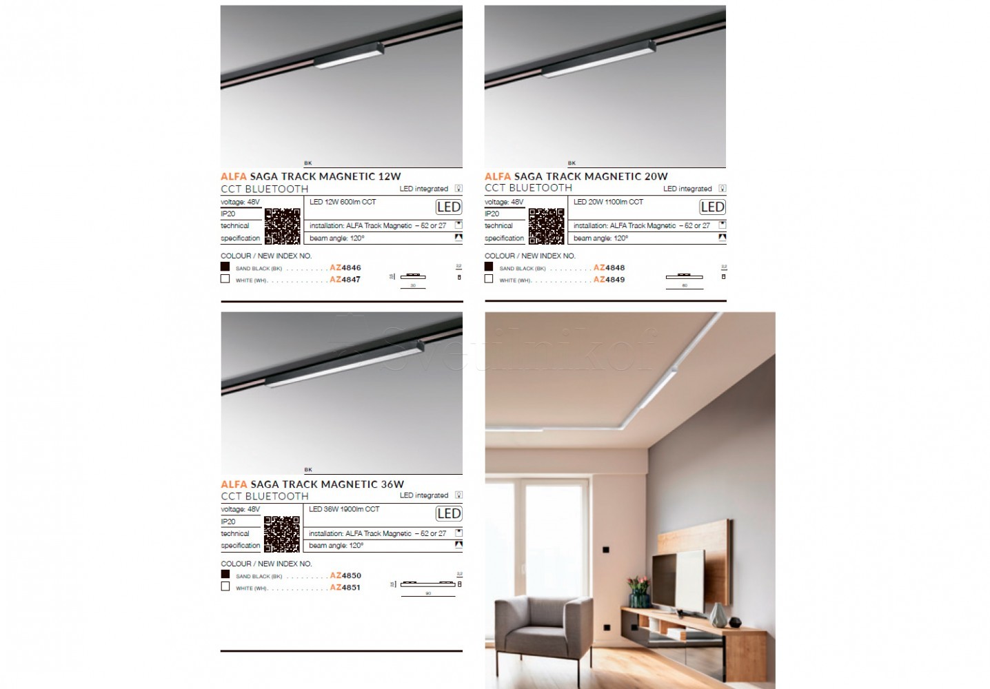 Магнитный трековый светильник ALFA SAGA 20W CCT BLUETOOTH SMART WH Azzardo AZ4849