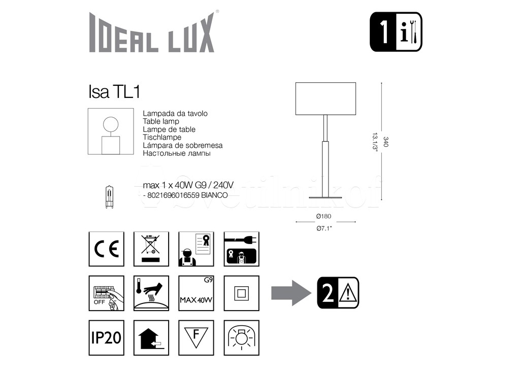Настольная лампа ISA TL1 Ideal Lux 016559