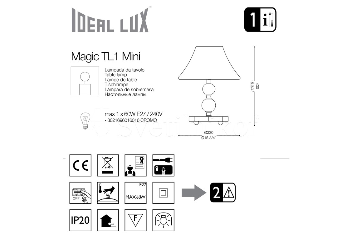 Настольная лампа MAGIC TL1 MINI Ideal Lux 016016