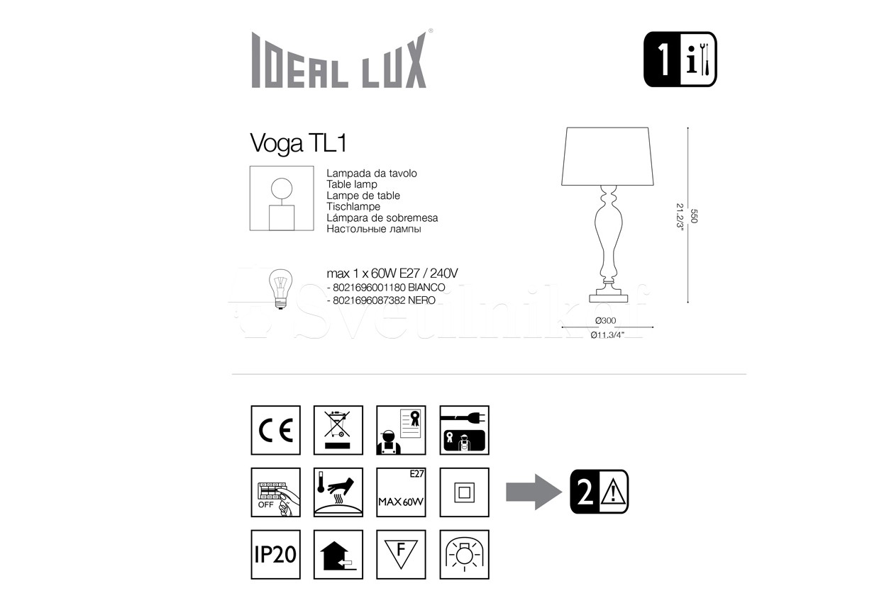Настольная лампа VOGA TL1 NERO IDEAL LUX 087382