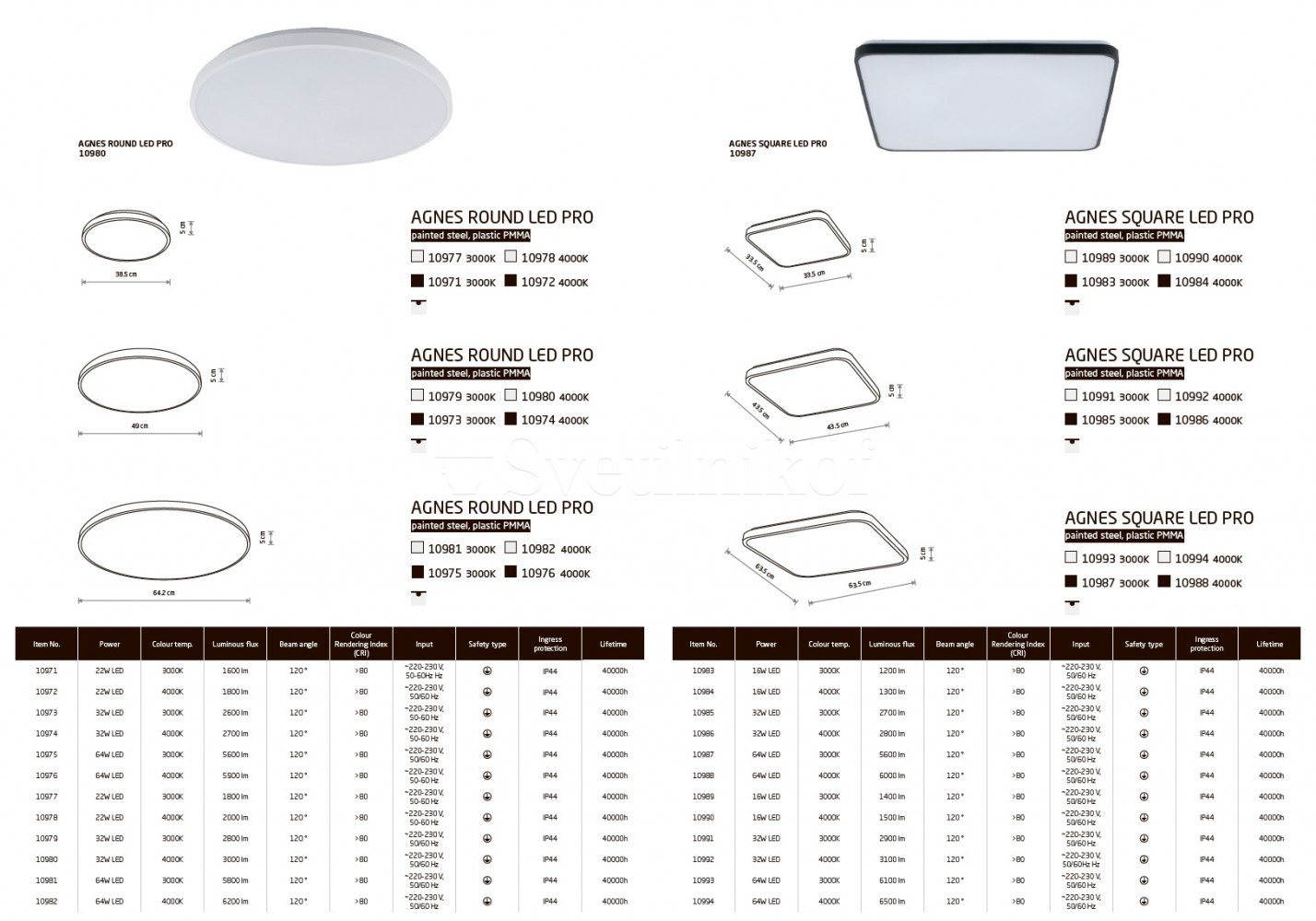 Плафон для ванной AGNES LED SQ 32W 3000K WH Nowodvorski 10991