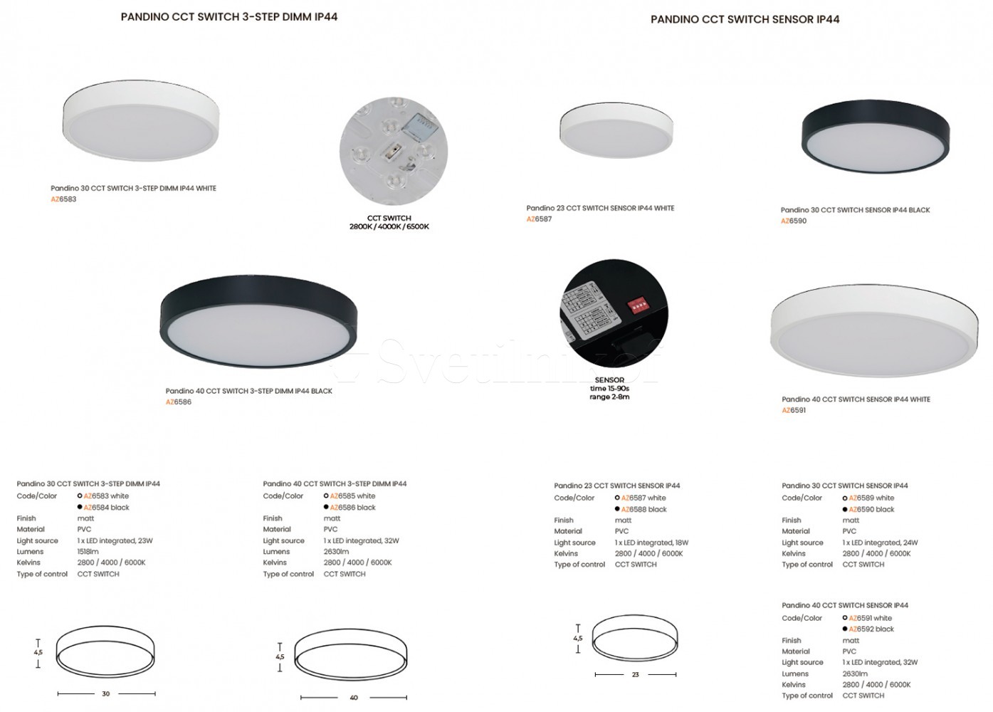 Плафон PANDINO 23 LED CCT IP44 SENSOR BK Azzardo AZ6588