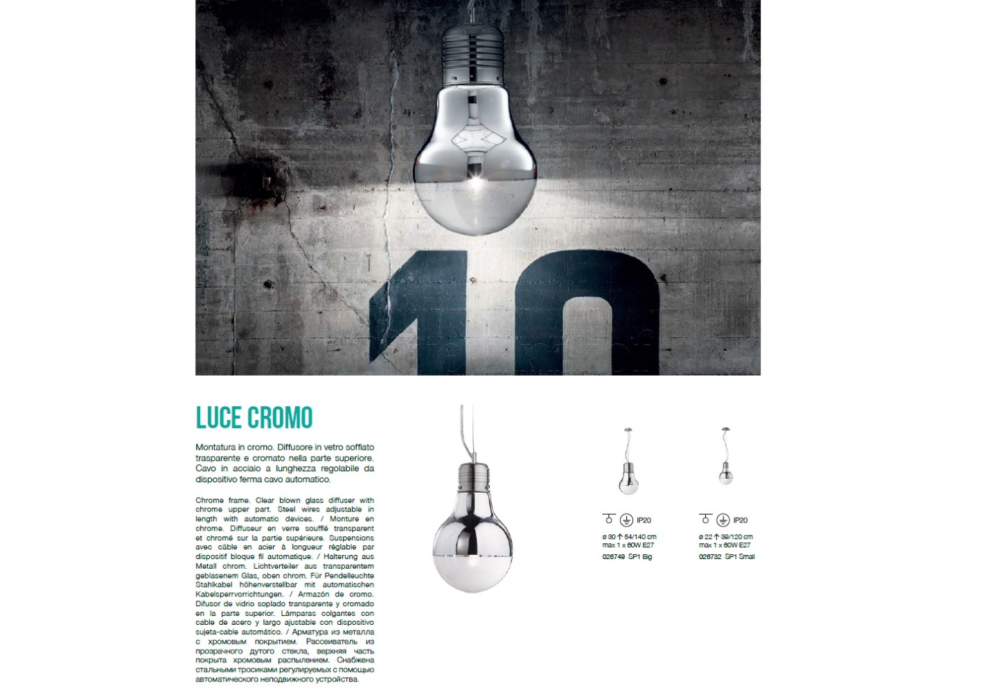 Подвесной светильник LUCE CROMO SP1 BIG Ideal Lux 026749