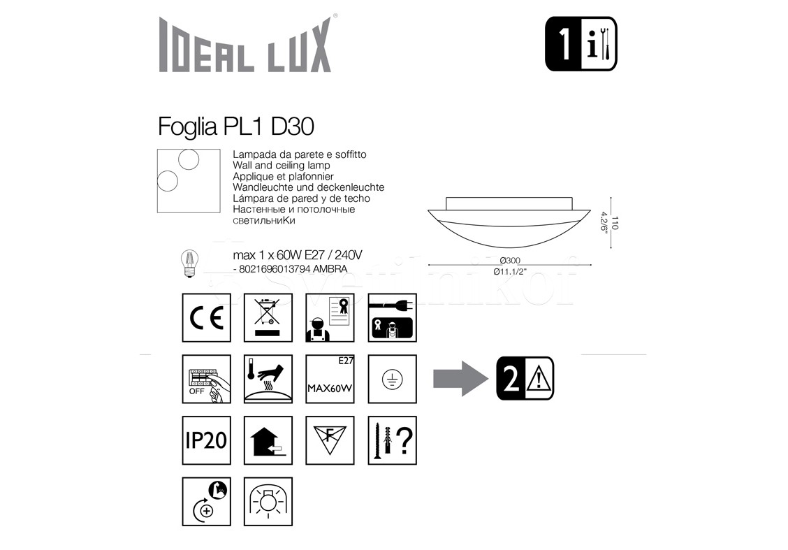 Потолочный светильник FOGLIA PL1 Ideal Lux 013794