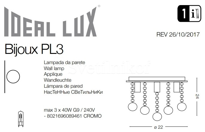 Светильник потолочный BIJOUX PL3 Ideal Lux 089461