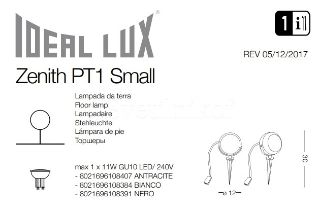 Светильник уличный ZENITH PT1 SMALL BIANCO Ideal Lux 108384