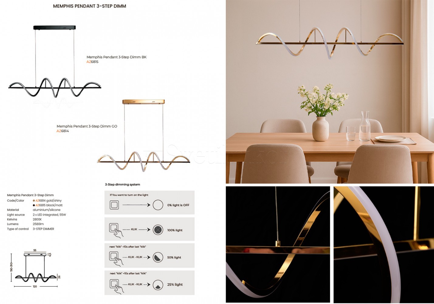 регулируемая высота подвеса, 3-шаговое диммирование