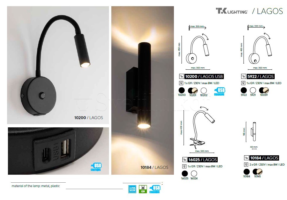 Бра LAGOS G9 USB BK/GO TK-Lighting 10201