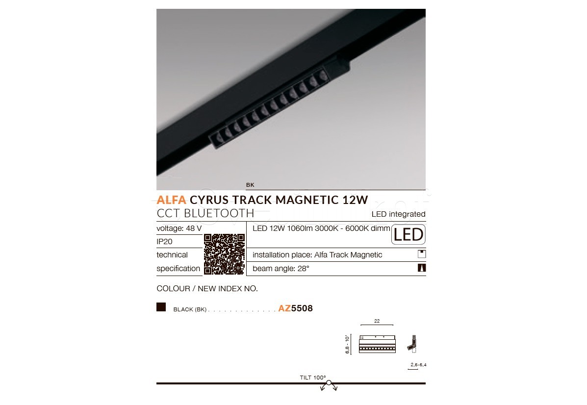 Магнітний трековий світильник ALFA CYRUS LED 12W CCT BLUETOOTH SMART Azzardo AZ5508