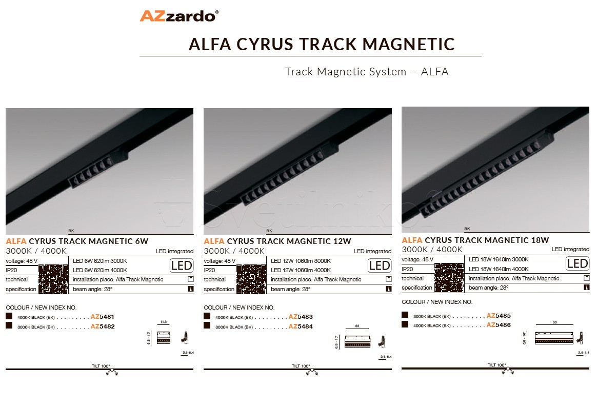 Магнітний трековий світильник ALFA CYRUS LED 18W CCT BLUETOOTH SMART BK Azzardo AZ5509