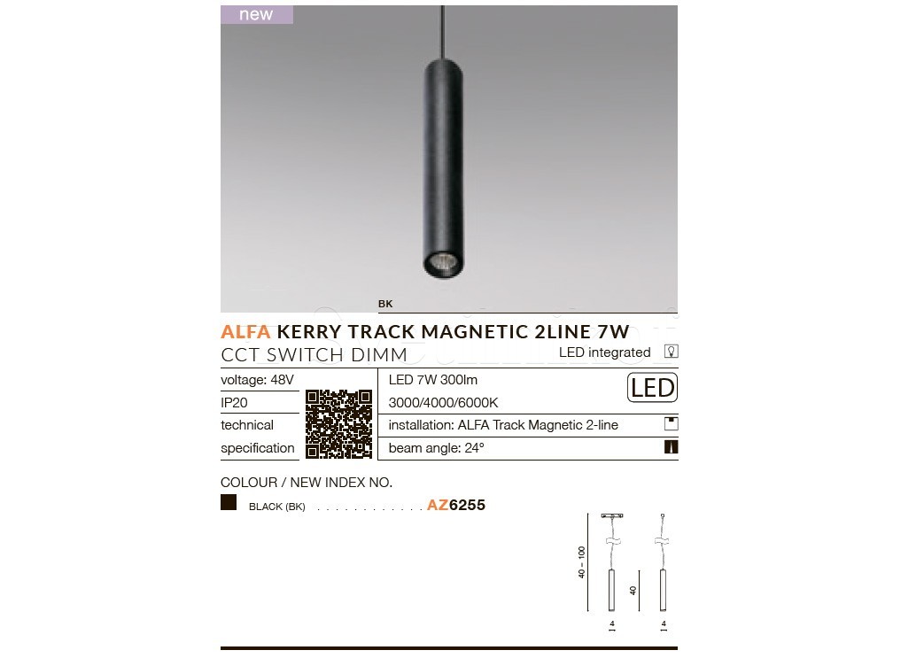 Магнітний трековий світильник ALFA KERRY LED 7W CCT SWITCH DIMM BK Azzardo AZ6255