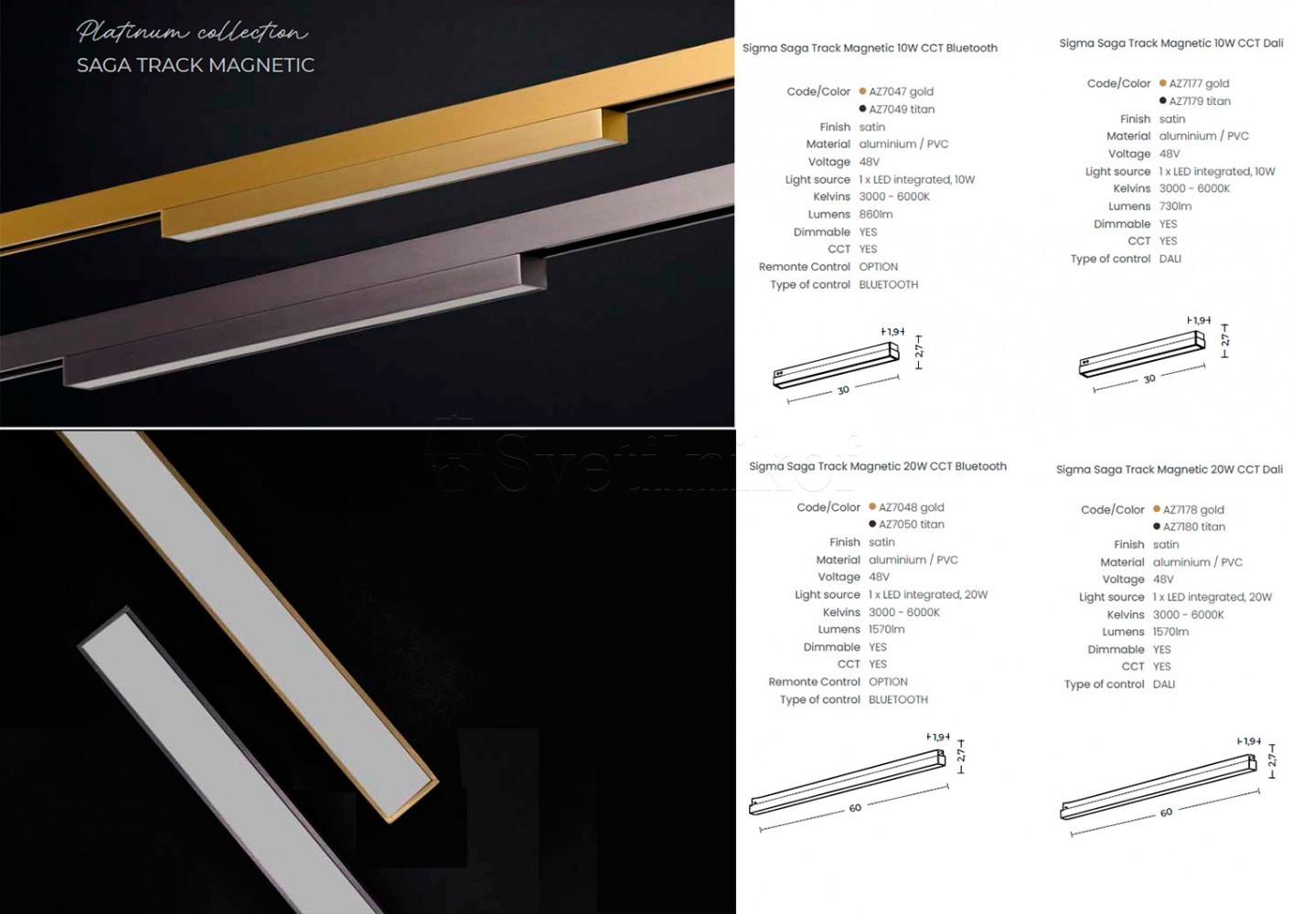 Магнітний трековий світильник SIGMA SAGA LED 20W CCT DIMM DALI GO Azzardo AZ7178