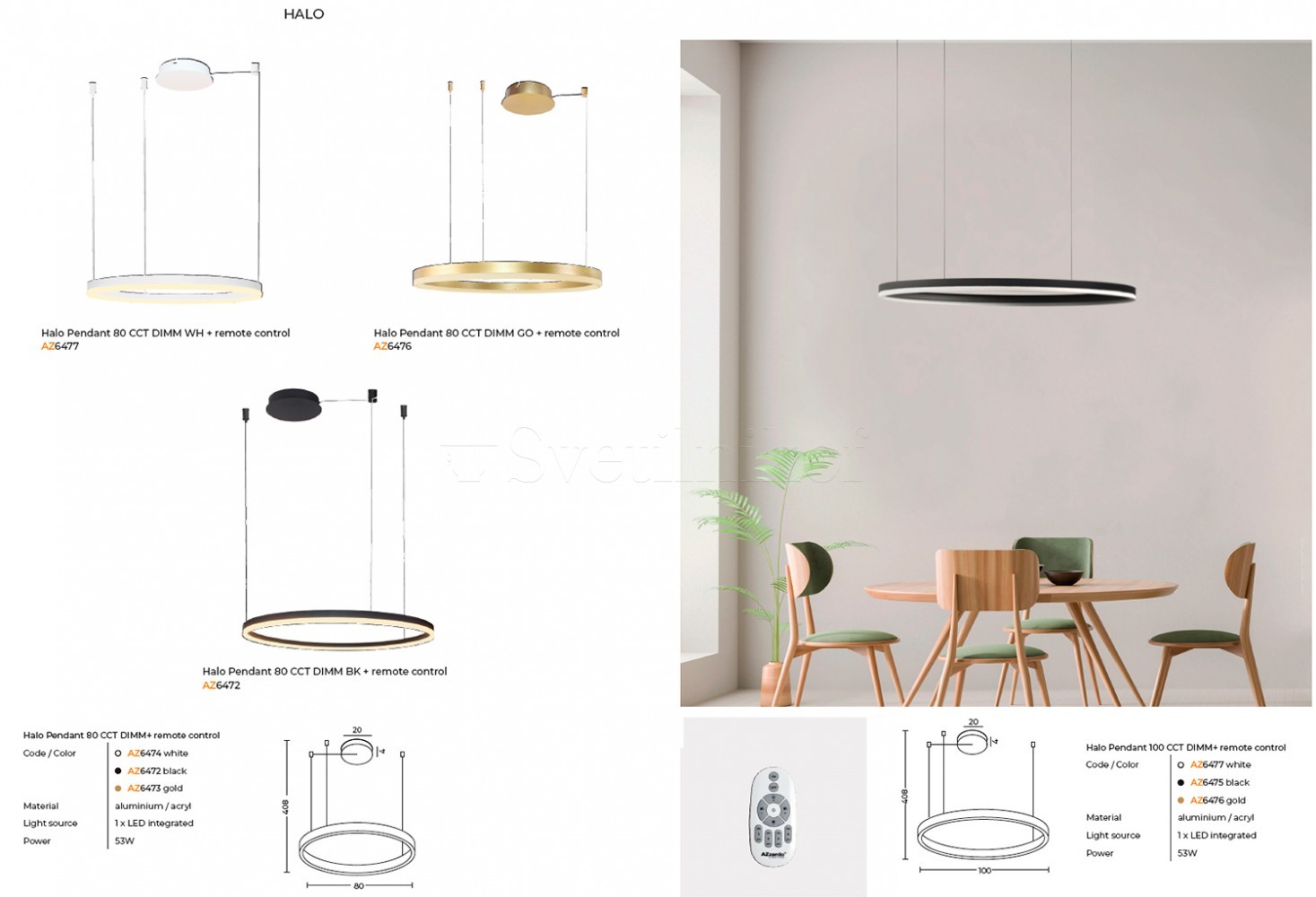 Підвісна люстра HALO 100 LED CCT DIM BK Azzardo AZ6475