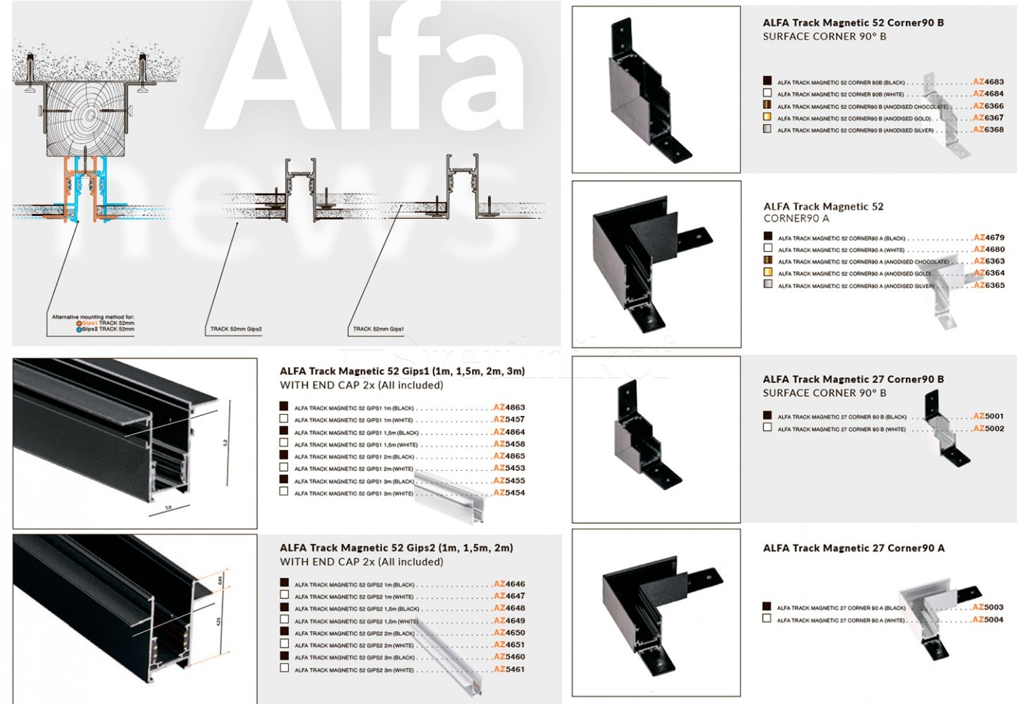 Шинопровід магнітний ALFA 52 GIPS1 3m BK Azzardo AZ5455