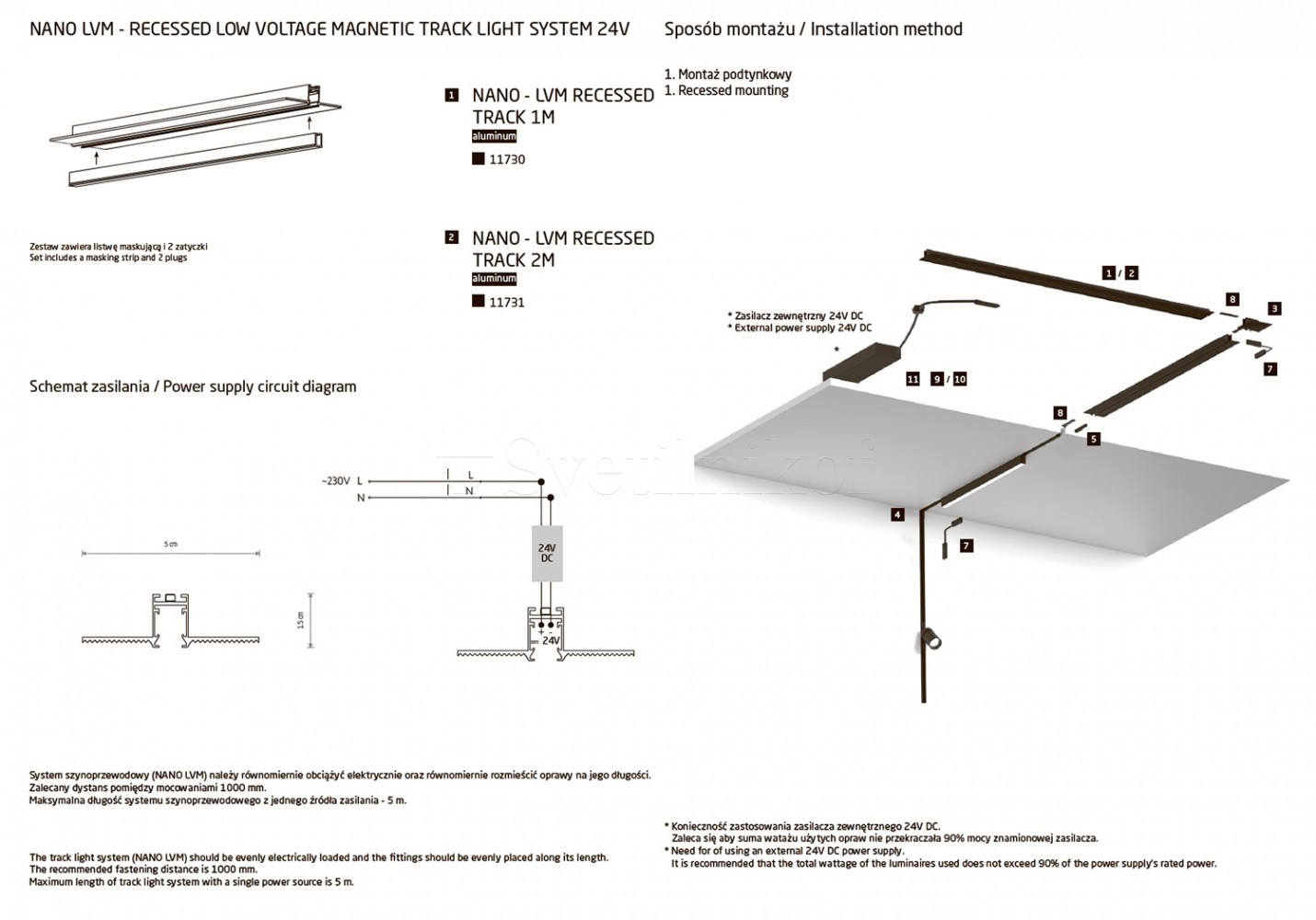 Шинопровід магнітний врізний LVM NANO 1m BK Nowodvorski 11730